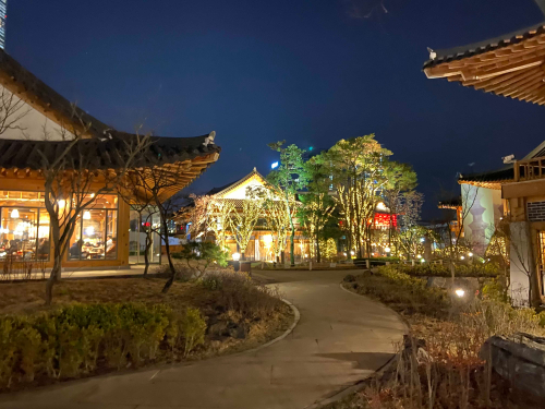 송도 한옥단지는 동서양의 만남을 느낄 수 있는 전통 가옥 촌이자 드라마 <도깨비>, <야왕>, <파랑새의 집>의 촬영지로 운영되었던 기록이 있으며 한옥 전통마을 전체 부지에 외식업체가 입점해 화려한 호텔, 식당, 카페 등의 상업 시설로 활성화 되어 있다.