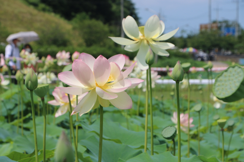시흥 연꽃테마파크는 시흥시 하중동 관곡지 일대에 조성된 공원으로, 연꽃 감상과 산책을 즐길 수 있는 장소입니다. 18만 평방미터의 면적에 연꽃 재배단지와 다양한 시설들이 조성되어 있습니다. 7월 중순부터 9월 중순까지 연꽃을 감상할 수 있으며 천문관, 자생화 식물원, 곤충 돔, 관상 호박 터널 하우스, 월동 하우스, 어린이 생태 놀이터 등 다양한 시설들이 마련되어 있습니다. 또한 시흥시생명농업기술센터를 중심으로 연꽃 테마 시험포와 연근 생산단지로 약 20만 평방미터 규모로 운영되고 있습니다.