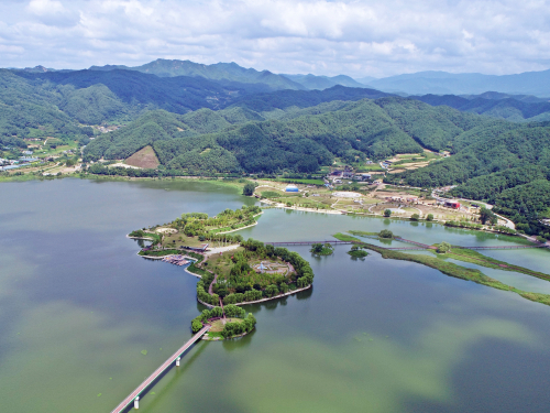 파로호 상류에 위치한 한반도 섬은 한반도의 모습으로 만들어진 인공 섬이지만 그 모습은 마치 자연 그대로인 것 같습니다. 여기서는 자연과 함께하는 산책로가 조성되어 있습니다.