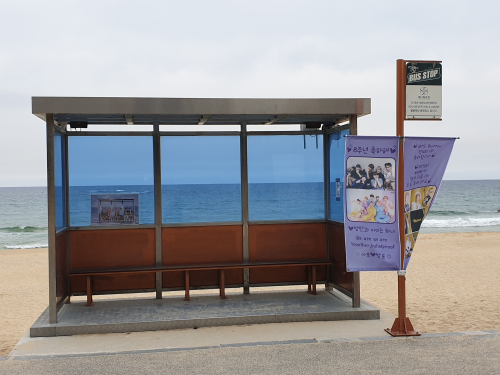 BTS 버스 정류장은 강릉 주문진 해변에 위치한 BTS 앨범 재킷 촬영장소로 유명합니다. 방탄소년단의 앨범 자켓 사진 속에서 등장한 바닷가 버스 정류장이며 현재는 관광객들을 위한 포토존으로 재현되어 있습니다.