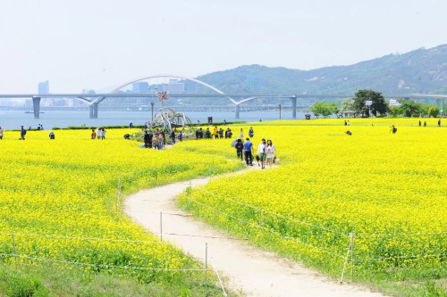 구리 한강시민공원은 한강 둔치에 위치한 시민 공원으로 야구장, 인라인스케이트장 등의 체육시설과 넓은 잔디 광장을 갖추고 있습니다. 봄과 가을에는 유채꽃과 코스모스가 만개하여 아름다운 꽃단지로 변모하는데, 매년 유채꽃 축제와 코스모스 축제가 열립니다.
