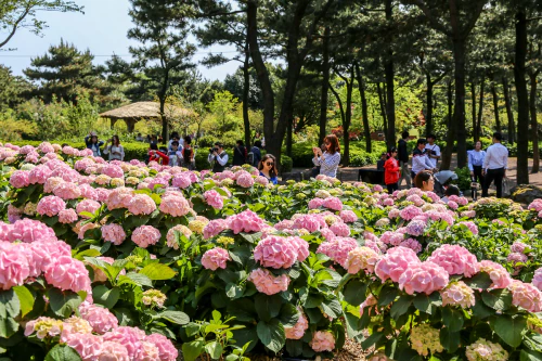 6월 중순경에는 전국 각지에서 아름다운 수국꽃을 만날 수 있습니다. 하지만 5월이라면 제주 휴애리가 전국 최초로 만개하는 수국을 자랑합니다.