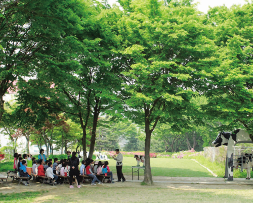 와우목장은 깨끗한 우유와 푸른 수목원을 함께 느낄 수 있는 곳입니다. 푸른 목초지와 노승산을 바라보며 힐링하는 시간을 가질 수 있습니다.