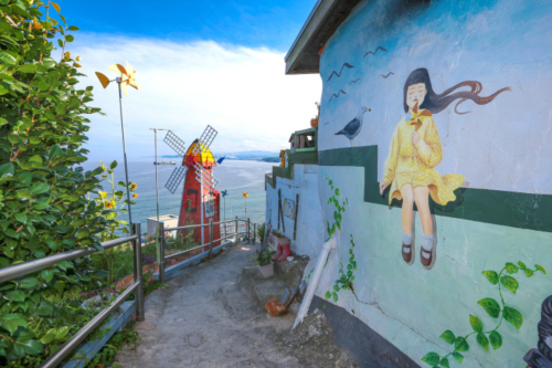 동해 바람의 언덕과 논골담길은 탁트인 전망과 주변경관이 아름다운 장소입니다. 좁은골목골목이 운치있고 인상적인 벽화와 함께 아름다운 마을풍경을 즐길 수 있습니다.