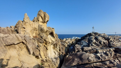 강원도 고성에 위치한 능파대는 암석해안상에 발달한 타포니 군락입니다. 원래는 화강암의 섬이었으나 모래의 쌓임으로 육지와 연결되었습니다. 능파대는 파도와 바위가 충돌하는 광경을 상징하며 문암해변과 아름다운 풍경을 함께 감상할 수 있습니다.