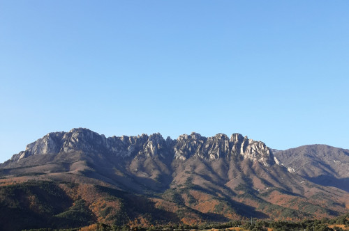 설악동 소공원 안의 깎아지른 듯한 돌산 800m 위 80칸의 넓은 돌바닥 둘레에 쌓은 2,100m의 산성이 권금성입니다. 산성을 만든 연대는 확실한 기록이 없어 알기 어렵습니다. 다만, 신라시대에 권씨와 김씨 두 장사가 난을 피하기 위해 쌓았다 하여 권금성이라고 합니다. 이곳에 오르면 외설악의 절경과 동해의 끝없는 바다가 펼쳐져 보여 장관을 이룹니다.