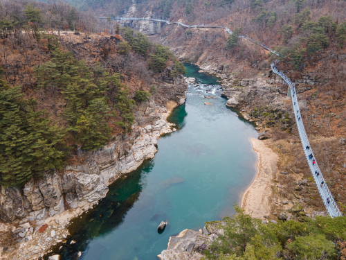 한탄강은 길이가 무려 136km에 이르며 화산폭발로 형성된 주상절리와 절벽, 협곡 등 다양한 지형을 볼 수 있는 강입니다. 특히 한탄강 주상절리길은 빼어난 자연경관으로 유명합니다.