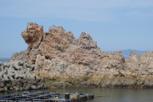 사자바위는 관창동 고봉포 앞바다에 위치하며 만조 시각에 가장 아름다운 모습을 뽑아냅니다. 그 형상은 마치 사자의 얼굴을 닮았다고 해서 "사자바위"라 불리며 그 아름다움이 극대화되는 만조 시간대에 감상할 수 있습니다.