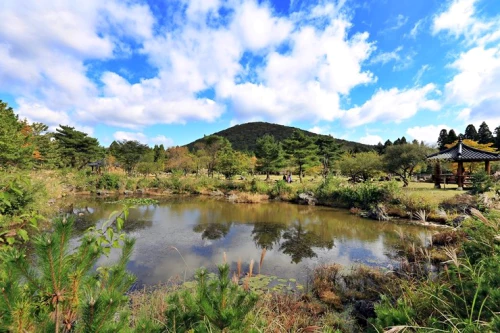 혼인지는 벚꽃 명소로도 유명합니다. 봄에는 넓은 잔디밭을 산책하며 벚꽃을 감상할 수 있습니다. 평화로운 분위기 속에서 여유를 누릴 수 있는 곳입니다.