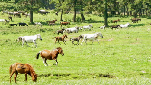 마방목지는 제주의 푸른 들판과 말들이 어우러진 목가적인 풍경을 감상할 수 있는 곳입니다. 이곳에서는 천연기념물로 지정된 제주 혈통 조랑말들을 가까이에서 볼 수 있습니다. 제주 특유의 푸른 하늘과 한라산을 배경으로 드넓은 초원지대에서 뛰노는 말들의 모습은 평화로운 제주의 정취를 느끼기에 최적의 장소입니다.