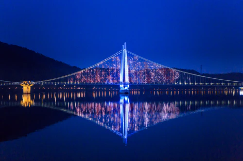논산의 대표 명소 중 하나인 탑정호 출렁다리는 아름다운 호수와 어우러진 출렁다리로, 방문객들에게 멋진 경치를 선사합니다. 이 다리는 특히 저녁이 되면 화려한 조명 덕분에 더욱 아름다워지며, 연인들의 데이트 장소로도 인기가 높습니다. 탑정호 주변 산책로를 걸으며 호수의 정취를 느껴보세요.