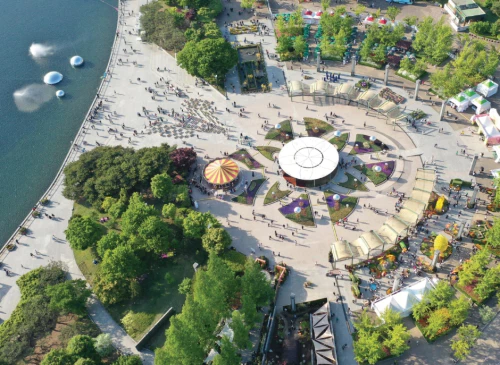 박람회장 전체가 꽃으로 뒤덮여 화사한 봄날의 정취를 만끽할 수 있습니다. 특히 야간에는 조명과 음악이 어우러져 로맨틱한 분위기를 자아냅니다.