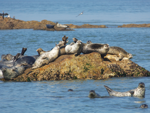 두무진 주변에는 천연기념물로 지정되고 보호받고 있는 물범들의 서식지가 있습니다. 해상일주 관광을 즐기는 동안 물범들의 활동을 가까이서 관찰할 수도 있습니다. 백령도는 이 물범들이 서식하는 소중한 공간 중 하나로, 이곳을 찾는 관광객들은 물범들의 활동을 관찰하며 자연의 아름다움을 경험할 수 있습니다. 점박이물범은 1982년 천연기념물로 지정되었으며 2005년부터는 야생동식물보호법상의 멸종위기 야생동물 2급으로 지정되어 보호되고 있습니다.